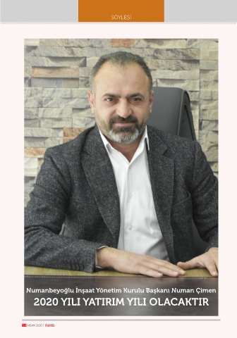 SÖYLEŞİ Numanbeyoğlu İnşaat Yönetim Kurulu Başkanı Numan Çimen 2020 YILI YATIRIM YILI OLACAKTIR 14 NİSAN 2020